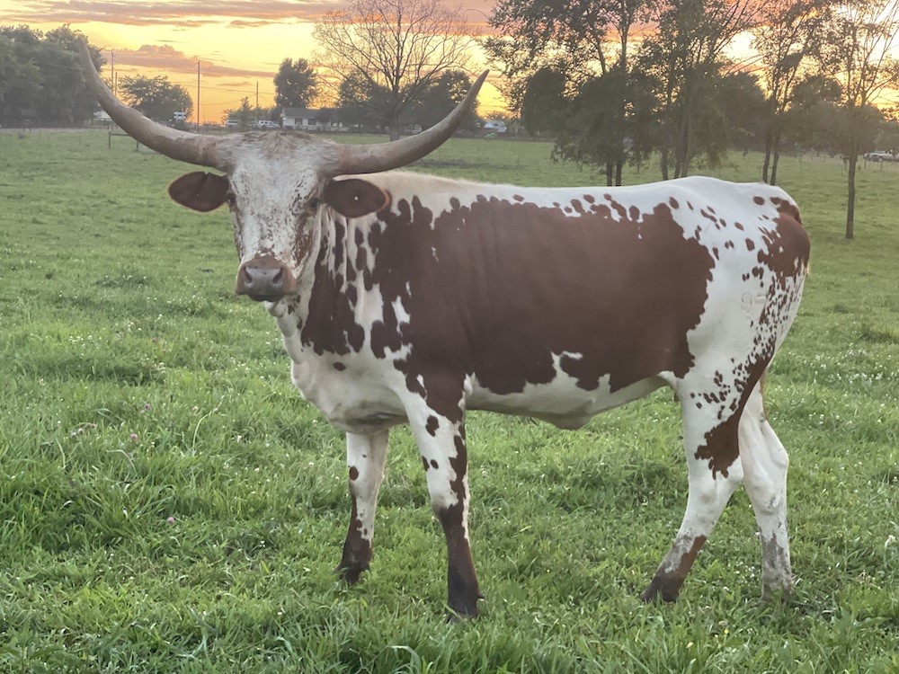 Beautifully marked lacy faced daughter of JH Rural Safari Son with very nice conformation, horns beginning to triple twist. is an outstanding mother who calves every 11 months like clockwork ans us one of the first to come up and be hand fed treats; she has been in numerous photo shoots and petting zoo events, This sweet lady's pedigree includes JP Rio Grande, VJ Tommie, Poco Lady BL, and Maximus ST. This is a difficult one to let go and is perfect for those looking to add twist in their program.
