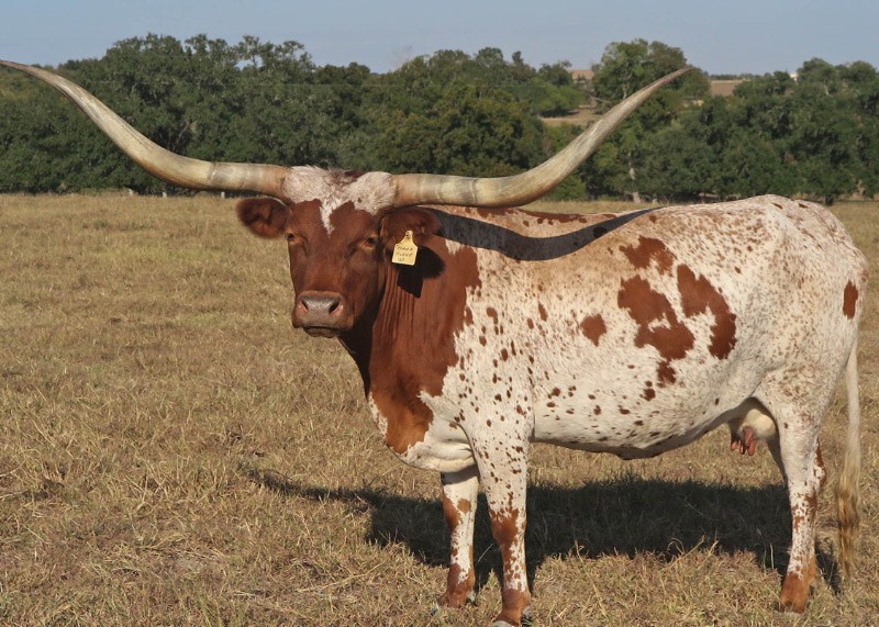 Great looking Tejas Star daughter with everything you want. color, size, horn, disposition. She should go well past 80" TTT, was over 70" @ four years. Had incredible heifers in 2013, 2015 and 2016.