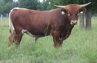 Ear tag 404. This little stud has 5 over 80" ttt animals in his pedigree. His dam has been a super producer generating lots of quality and sales. His Grand dam LLL Gunsmokes Tizzy has also been a stand out, over 80" ttt and over 105" in total horn.