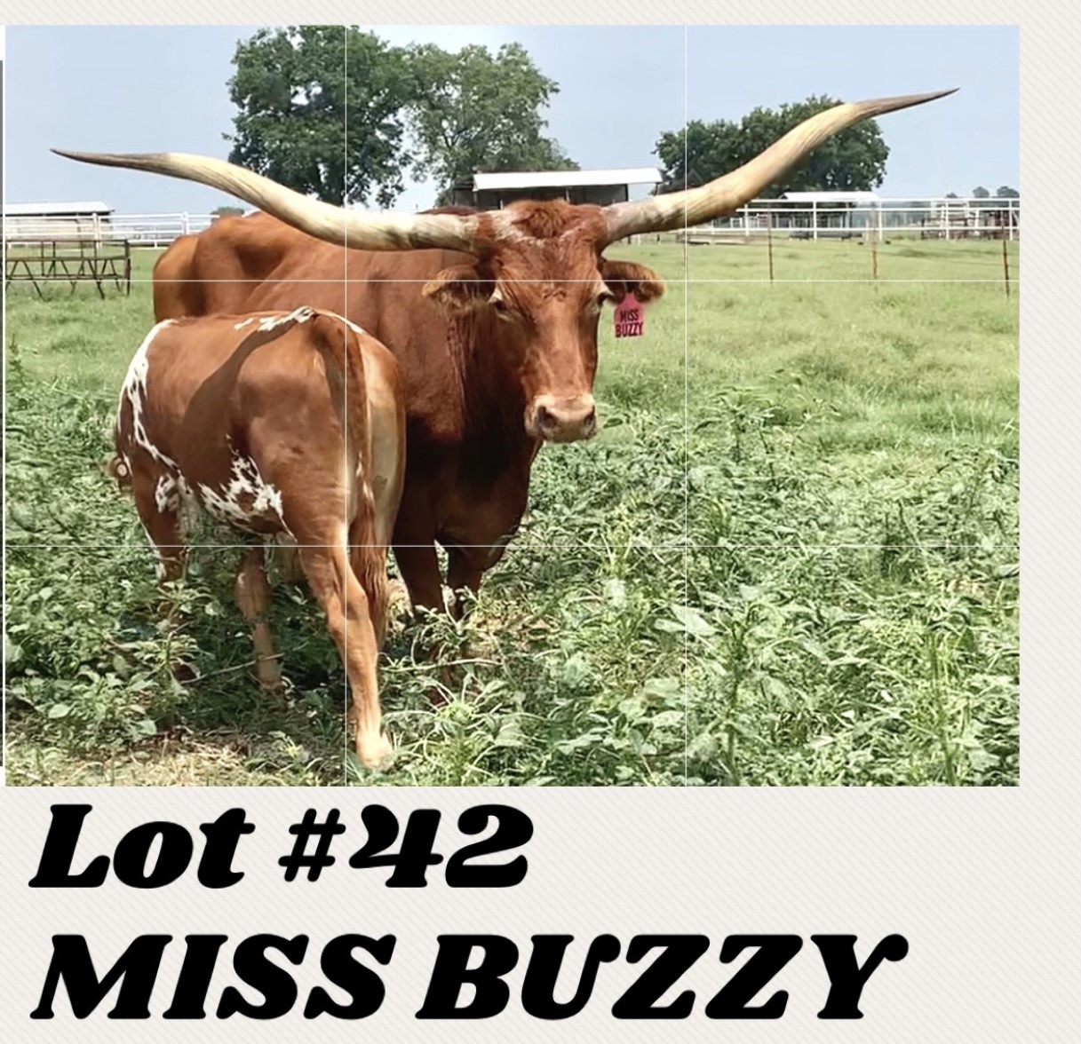 Miss Buzzy is an outstanding Twisty Horned daughter of the Great "Buzz Saw" out of Hunts Command Respect. Her Dam "JBM Miss Jasmine" goes back to "Boomerang CP" for the great conformation that this girl has and to "Overlyn" for the twist and added conformation. Don't Miss this opportunity !!!