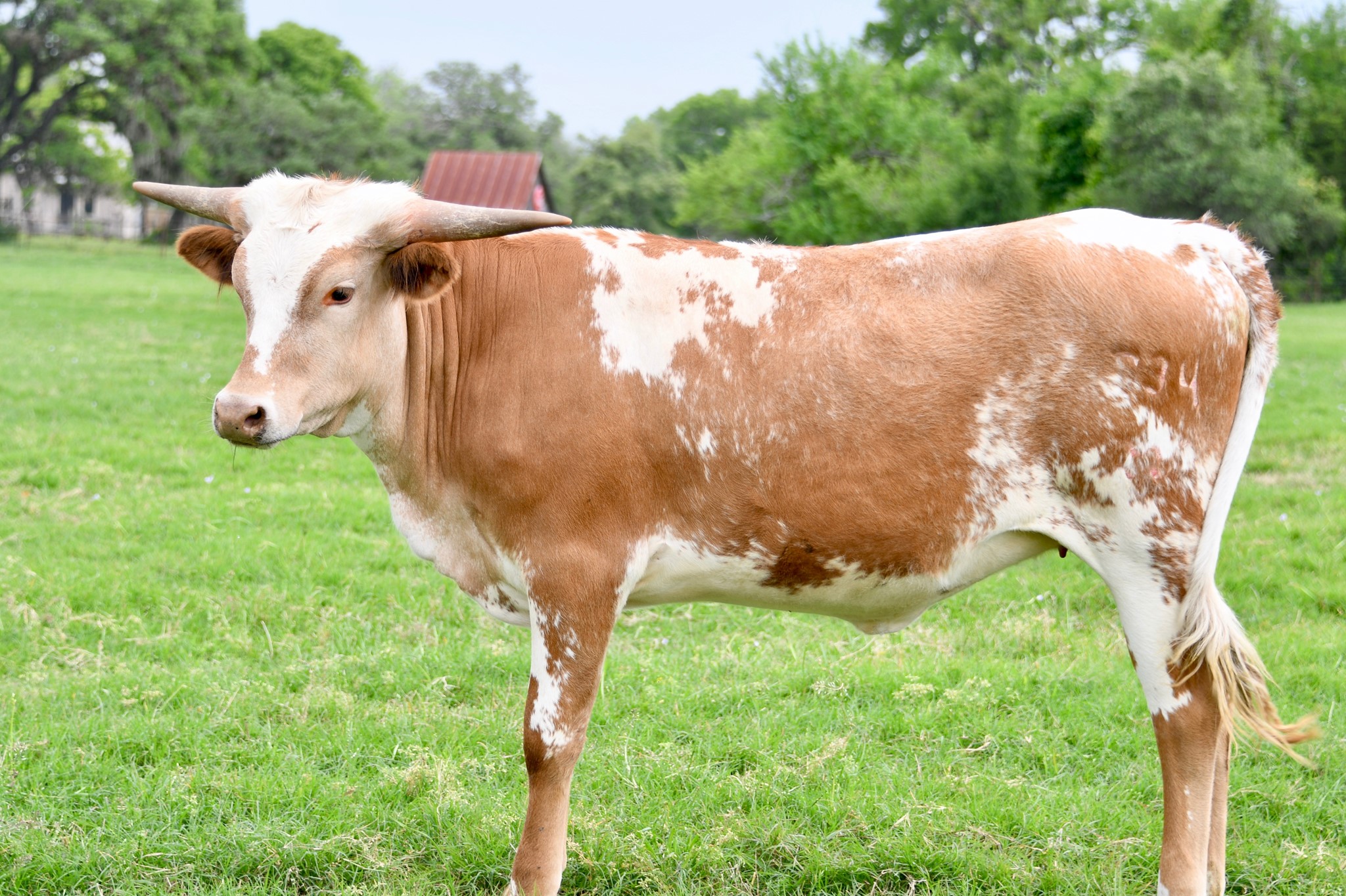 big deep bodied, easy keeping colorful cow with excellent udder and feet. All the traits we want to pass on in our herd. What a family she comes from.