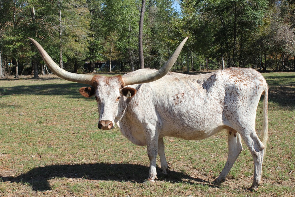What a cow going to our donor program after she has her Smok'N calf over 72" t2t and 94" th. She is the dam of Grill who is also in our donor program.Thick horn all the way out to the tips.